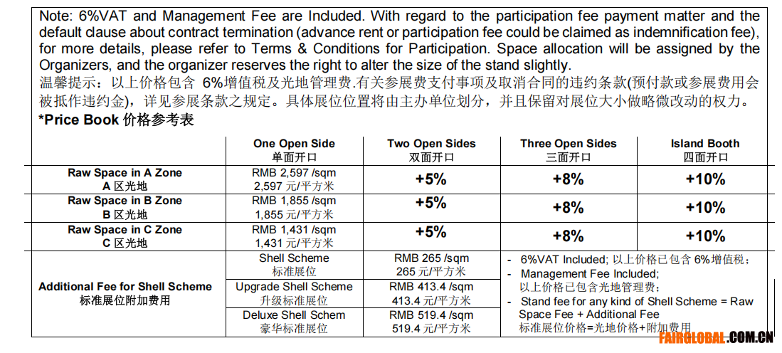 展位价格: